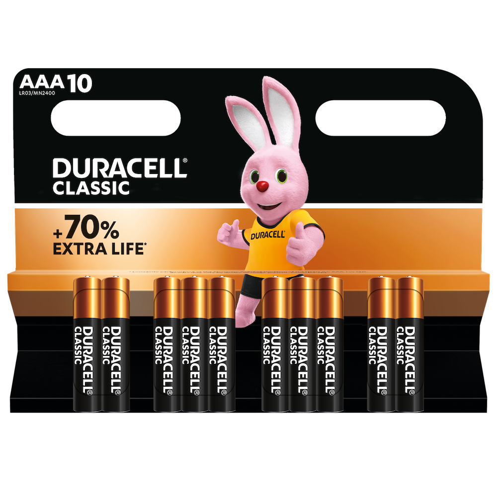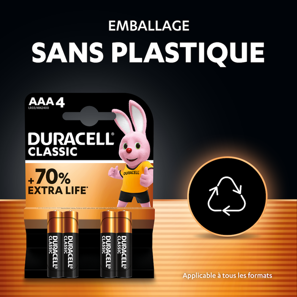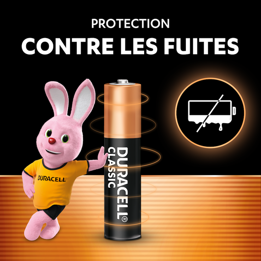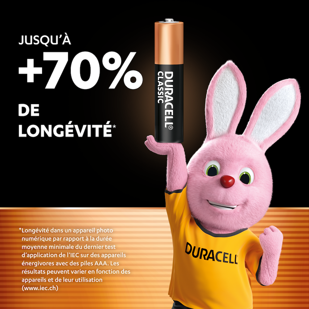 * Plus de longévité vs la durée moyenne minimum du dernier test IEC AAA sur les jouets. Les résultats peuvent varier suivant l’appareil ou l’utilisation (www.iec.ch) ** Technologie propriétaire