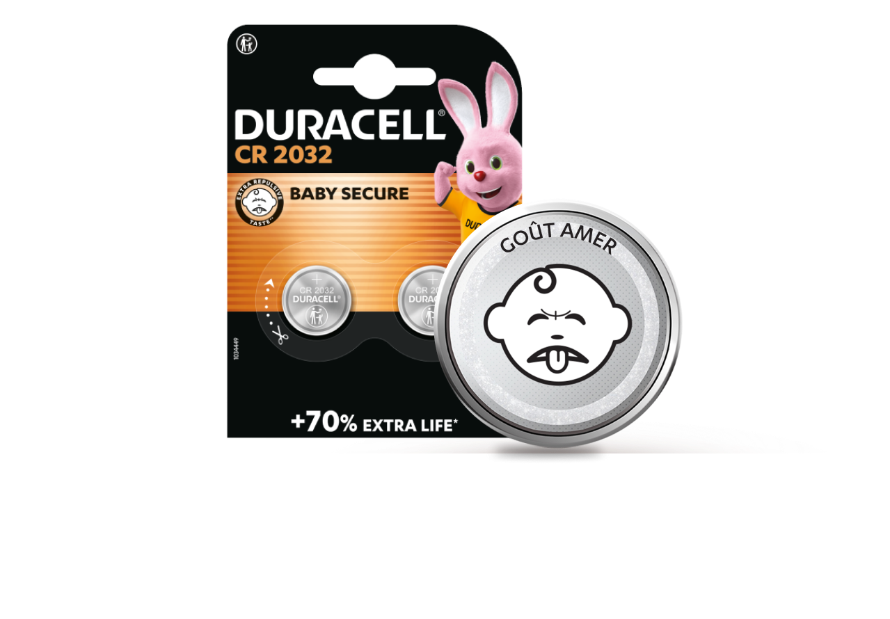 La pile dispose d’un sticker imprégné de la substance la plus amère au monde afin d’éviter les risques d’ingestion par les jeunes enfants. Nous utilisons du Bitrex, une substance inoffensive pour la santé qui permet de sauver des vies. Elle est régulièrement utilisée sur des produits ménagers pour prévenir le risque d’ingestion. En savoir plus sur : bitrex.com